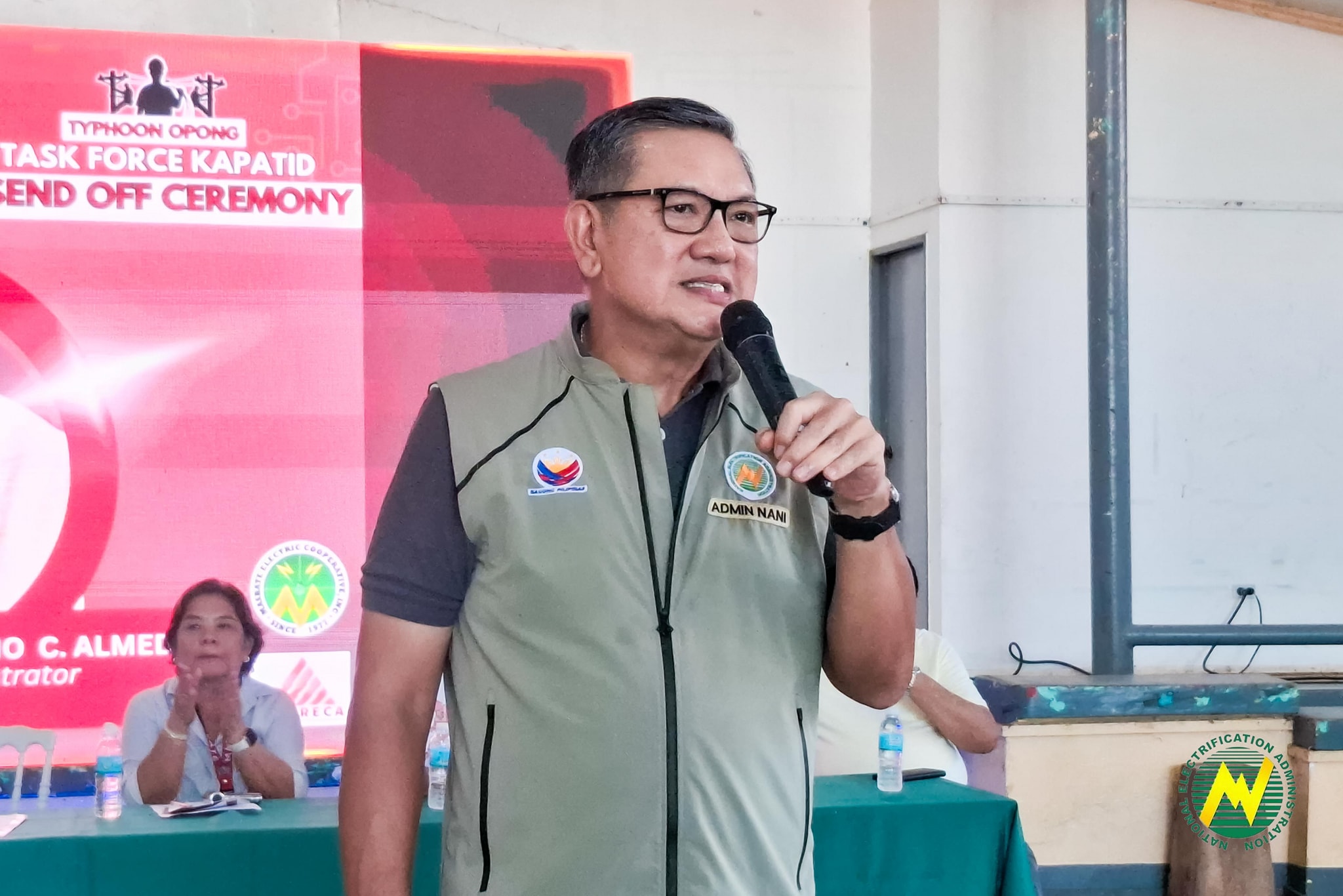 In his address, Administrator Almeda expressed his deep appreciation to the TFK contingents from Luzon and Visayas electric cooperatives (ECs) for their vital role in accelerating power restoration and line rehabilitation efforts in Masbate province in the wake of Typhoon ‘Opong.’