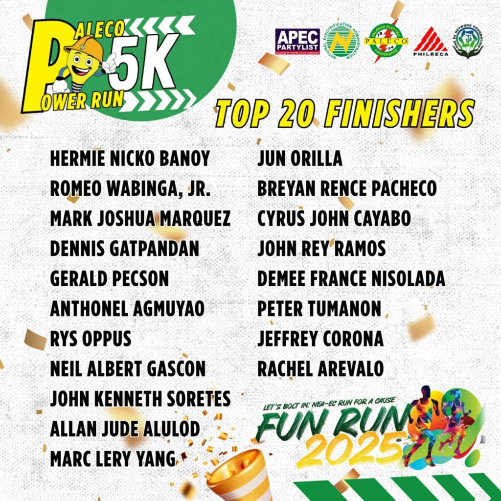 Aming ikinagagalak na ibahagi ang naging resulta ng ginanap na Paleco 5K Power Run: