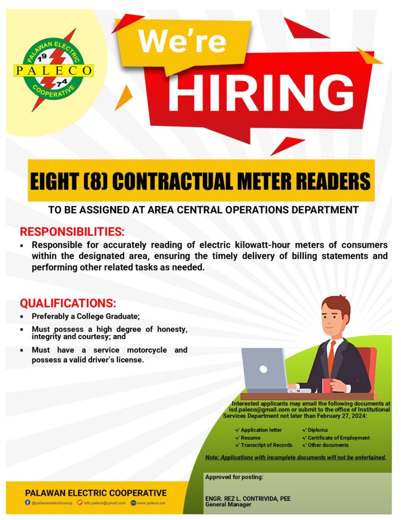 Share to Facebook RECENT POST Hiring: Eight Read More July 23, 2025 Hiring: Two Read More July 23, 2025 HIRING_ContractualMeterReader4_07232025 Read More July 23, 2025 HIRING_ContractualMeterReader6_07232025_south Read More July 23, 2025 Hiring: Twelve Read More July 23, 2025 Hiring: Two Read More June 11, 2025 Load More VIEW ARCHIVE