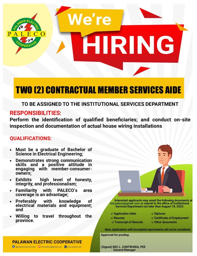 Share to Facebook RECENT POST Hiring: Two Read More August 11, 2025 Hiring: Two Read More August 11, 2025 Hiring: One Read More August 11, 2025 Hiring: Eight Read More July 23, 2025 Hiring: Two Read More July 23, 2025 HIRING_ContractualMeterReader4_07232025 Read More July 23, 2025 Load More VIEW ARCHIVE
