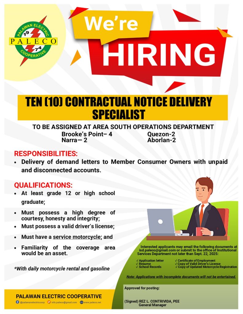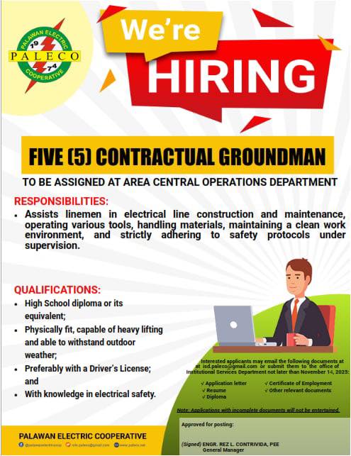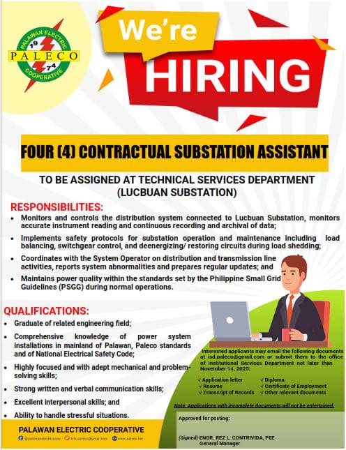 Hiring: Four [4] Contractual Substation Assistant (Lucbuan Substation)