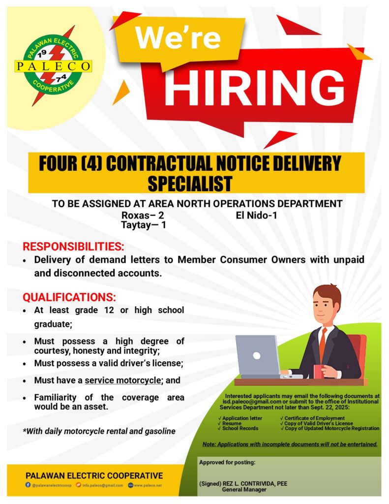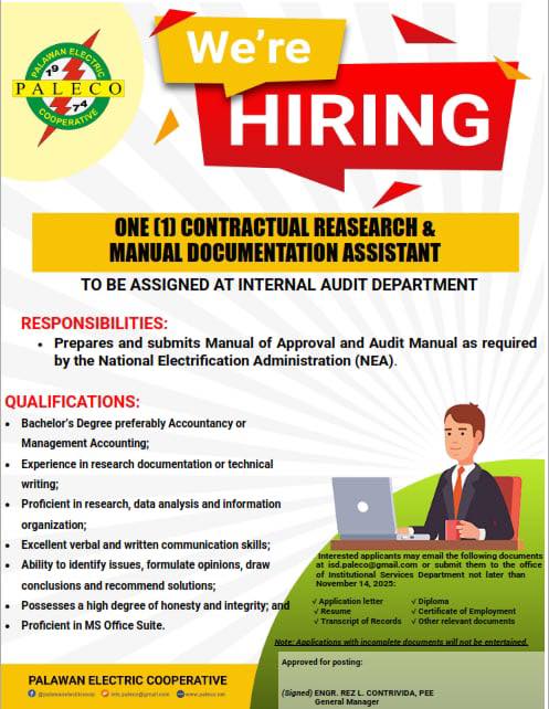 Hiring: Four [4] Contractual Substation Assistant (Lucbuan Substation) Read More »