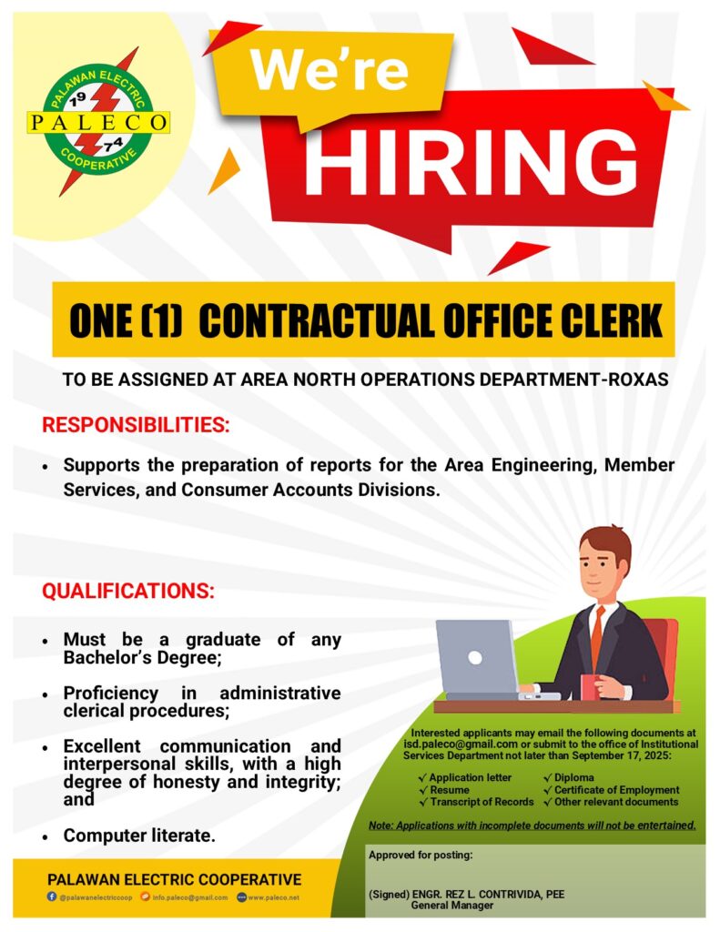Hiring: One [1] Contractual Office Clerk – Area North Operations Department Read More »