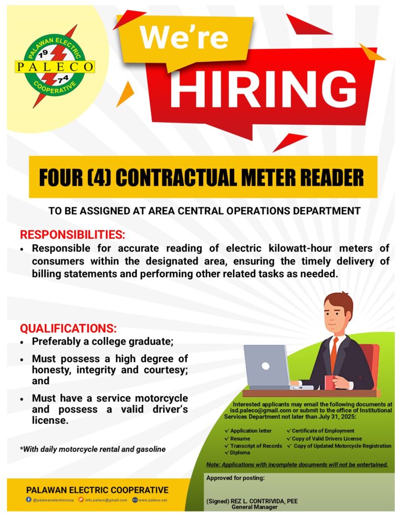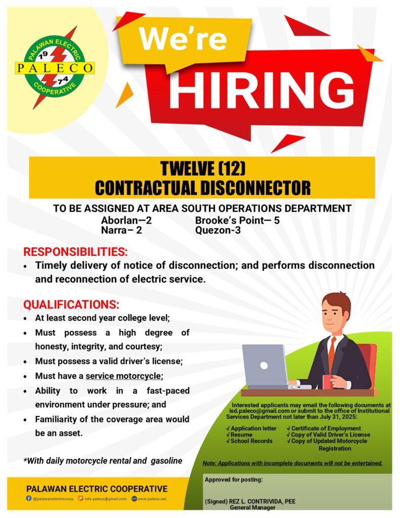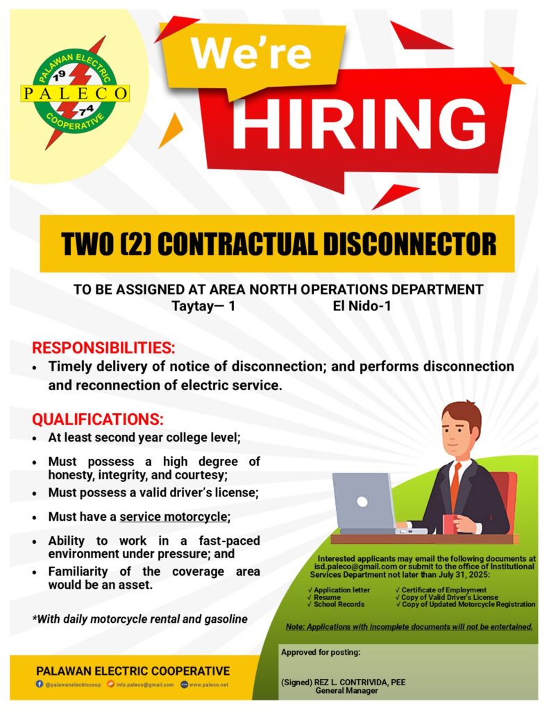 Hiring: Two [2] Contractual Disconnector – Area North Operations Department