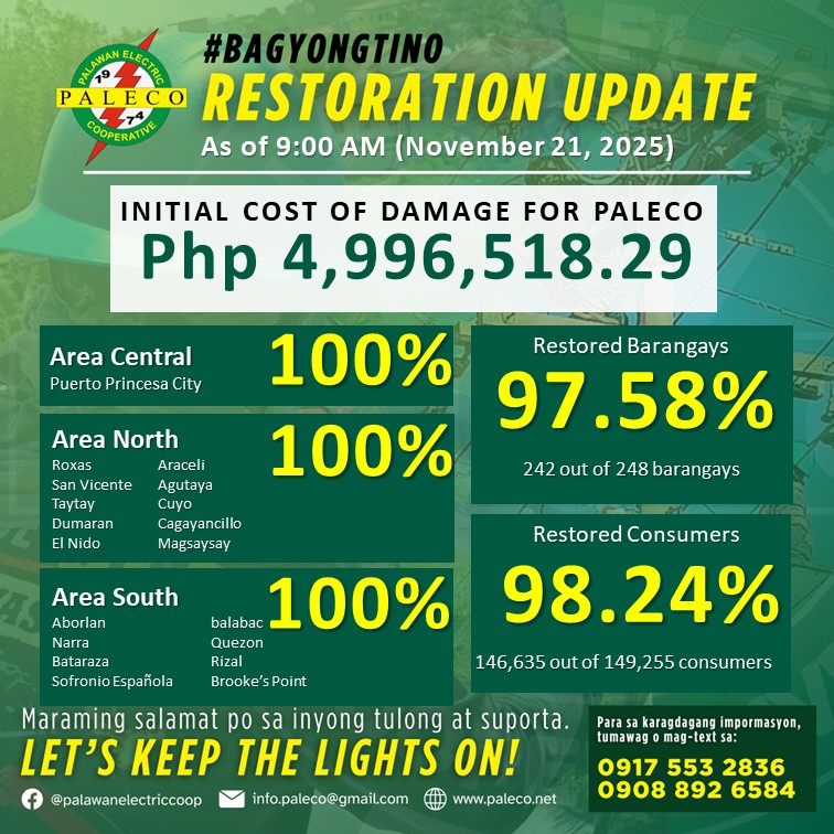 Magkakaroon ng LIBRENG Basic Electrical Troubleshooting Seminar Caravan ang ating Kooperatiba ngayong linggo! Narra, PalawanDate: November 26Registration: November 24-25 | PALECO Narra Satellite OfficeNumber of participants: 50 Roxas, PalawanDate: November 27Registration: November 25-26 | PALECO Roxas Satellite OfficeNumber of participants: 50 Puerto Princesa CityDate: November 28Registration: November 26-27 | PALECO Main OfficeNumber of participants: 50 Magdala lamang ng […]