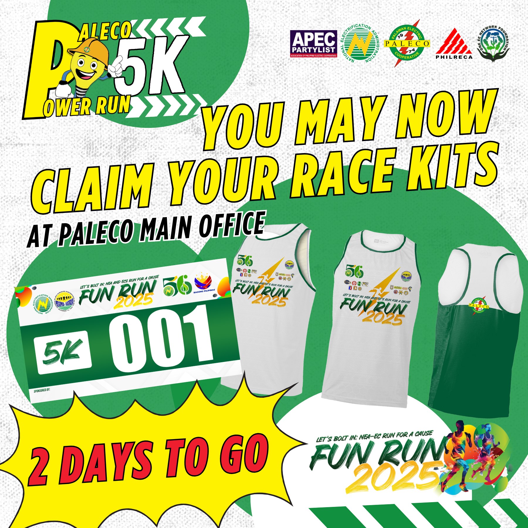 You may now claim your race kits at PALECO Main Office