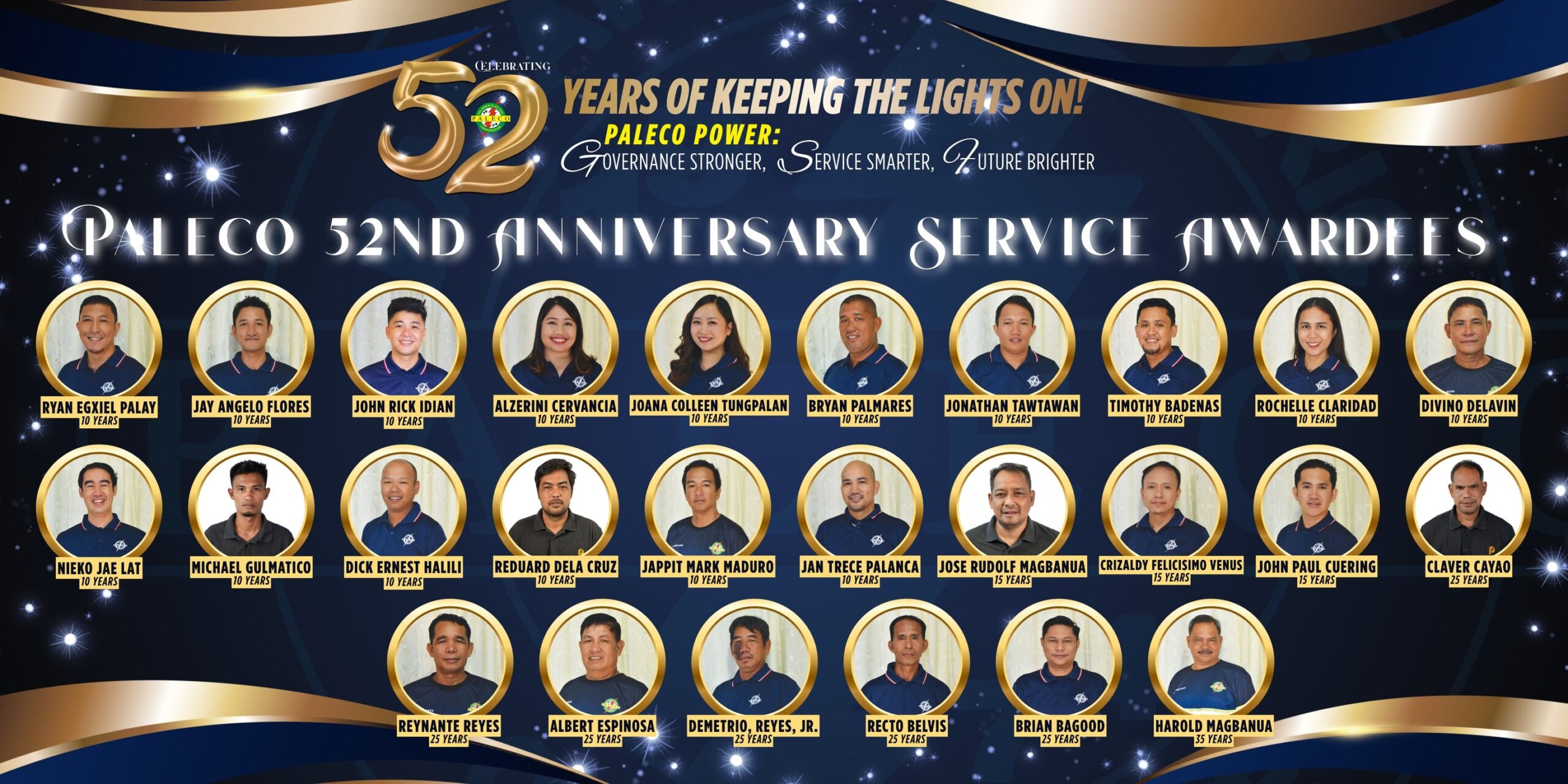 In celebration of its 52nd Founding Anniversary, the Cooperative recognized employees who have served PALECO for 10, 15, 25, and 35 years.