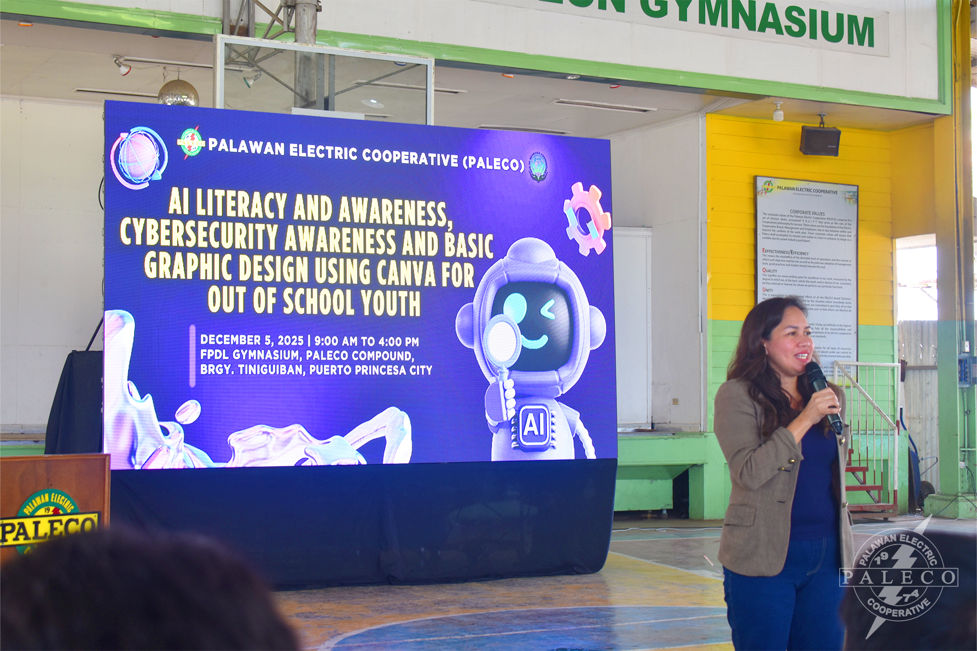 The Palawan Electric Cooperative (PALECO), through its Member Services Division under the Institutional Services Department, is currently conducting a livelihood training program on AI Literacy, Cybersecurity Awareness, and Basic Graphic Design Using Canva at the FPDL Gymnasium, PALECO Main Office.