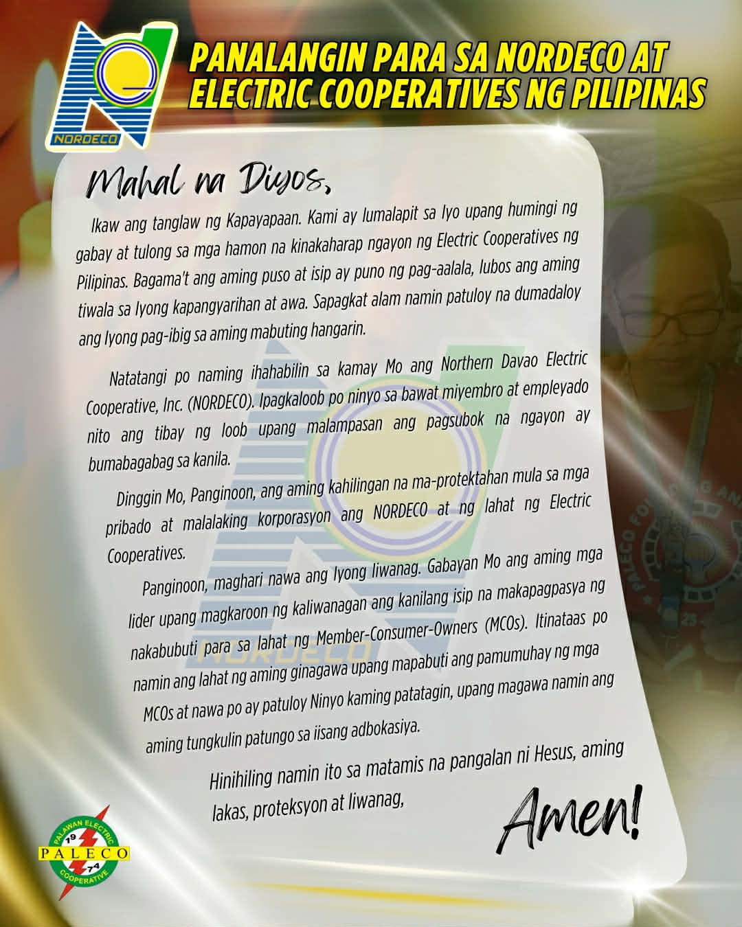 More than just electricity runs through our homes—it is the power of unity, the strength of our Member-Consumer-Owners (MCOs), and a movement that will not be silenced. Palawan Electric Cooperative (PALECO) offers its heartfelt prayers and stands in steadfast solidarity with Northern Davao Electric Cooperative, Inc. (NORDECO). ✊🏻⚡