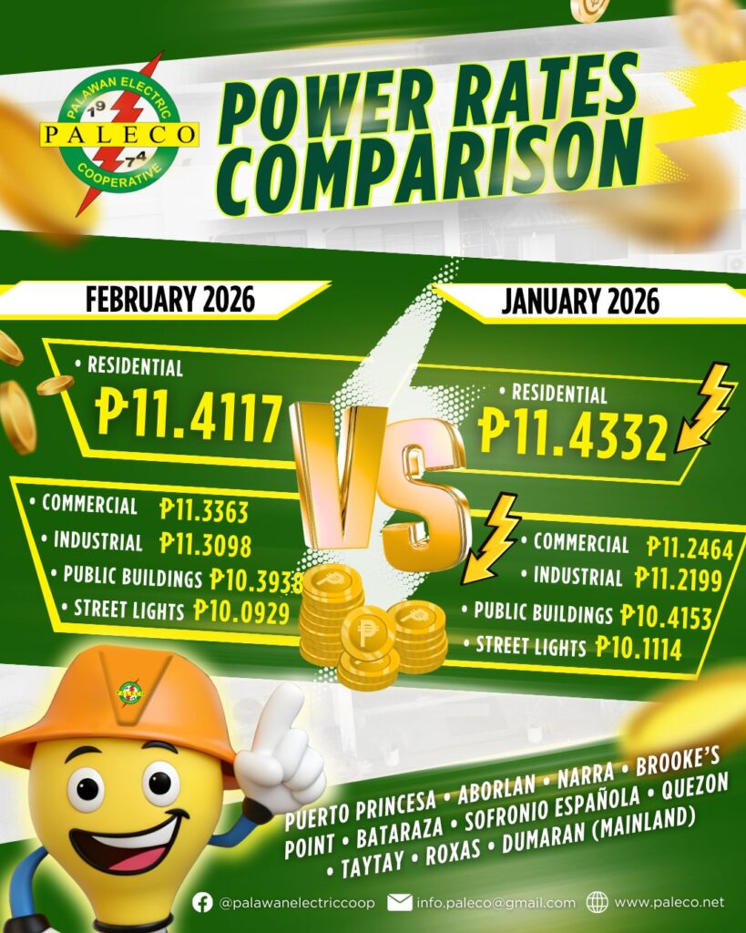 PALECO Power Rates Comparison February 2026 vs. January 2026