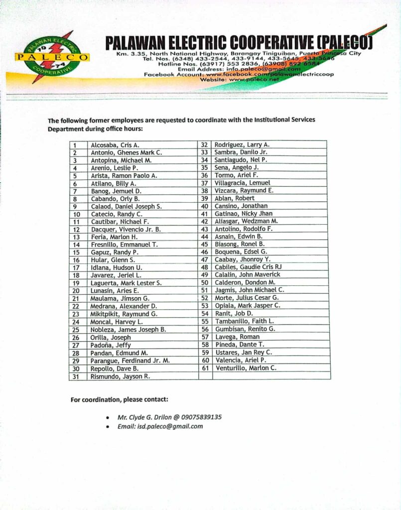 The following are requested to coordinate with the Institutional Services Department during office hours: