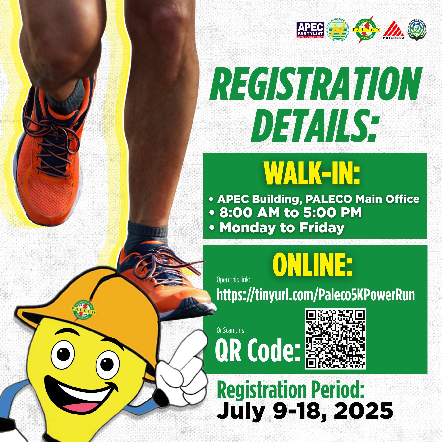 Visit tinyurl.com/Paleco5KPowerRun or simply scan the QR code below.